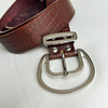 Cinto de cuero grabado color marrón claro con hebilla plateada con pasador.